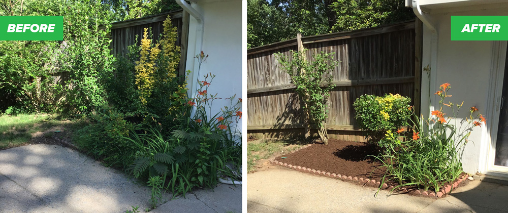 - Applied a thick layer of premium mulch to front beds and around trees and shrubs