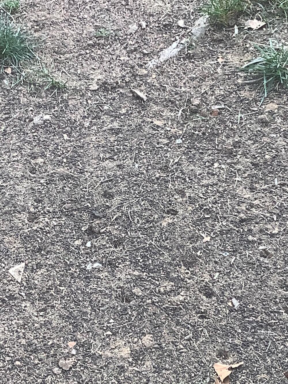From this angle, it’s very difficult to see, but in the before image, there are plugs from aeration and the light brownish-grey biochar pellets—boy, do these pellets work wonders. You’ve probably seen photos of black compost that covers the lawn, that is a different product we aren’t using. As you can see from the after images, bio-char does not require that much product to successfully rescue a lawn.