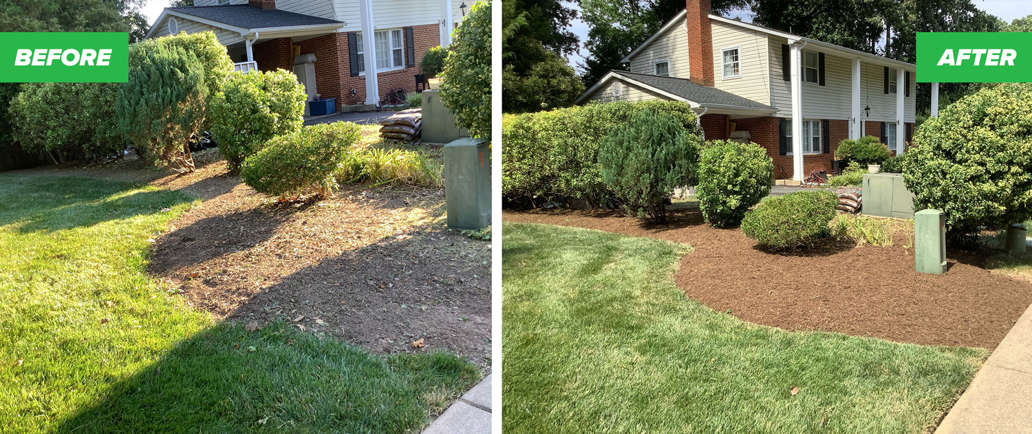 Our wonderful client at Game Lord Dr, Springfield, VA, sought a summer yard cleanup and mulch going into the warm season. They were already thrilled with their organic-based lawn care program and lawn mowing service, and wished to improve their garden beds. They requested a detailed estimate for our Clean-Up and Mulch services; a thorough flower bed cleanup, removal of winter debris, and addressing persistent bare spots.